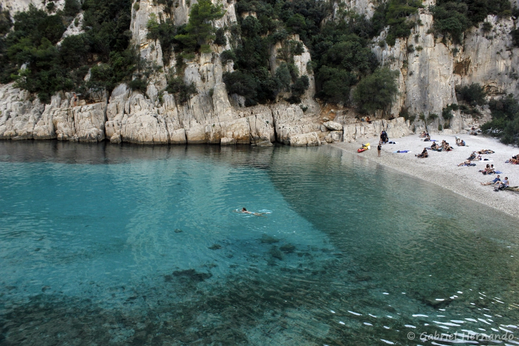 La calanque d’En-Vau, avec celle de Sugiton, compte certainement parmi les plus belles calanque de Marseille et Cassis. Très encaissée, ses hautes falaises plongent dans l’eau cristalline. A son extrémité, la calanque présente une plage de galets. Les fonds marins alternent sable et posidonie, où se côtoient de nombreuses espèces marines.